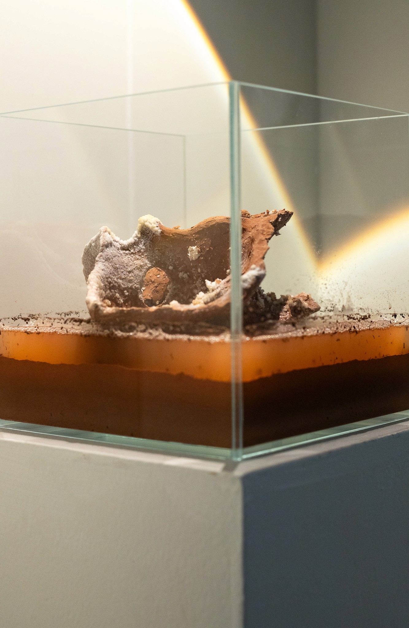 A mass of clay, sediment, and brick slowly mutates under acidic conditions—Latentes invites viewers into a living system, shaped by time, chemistry, and collaboration.